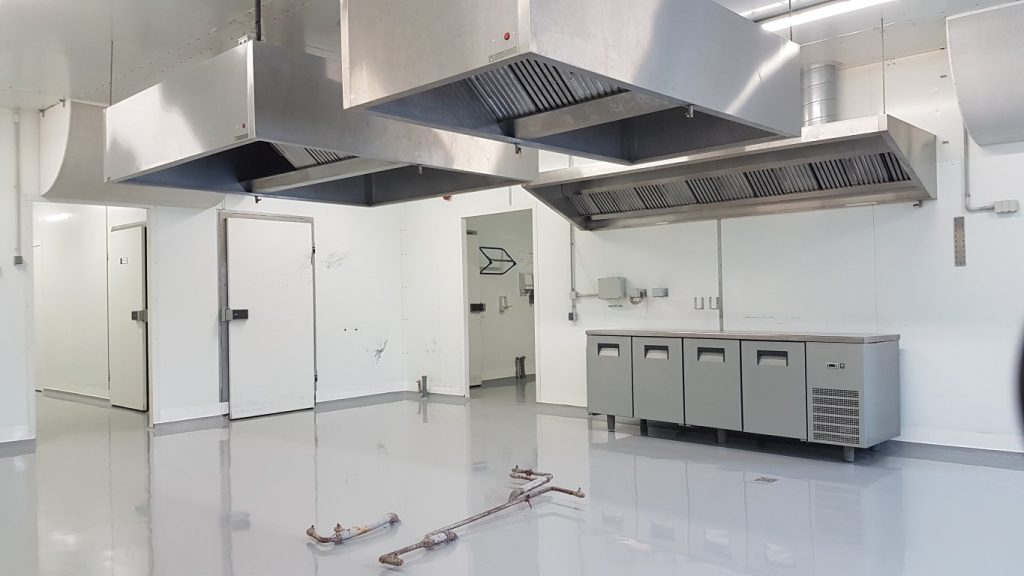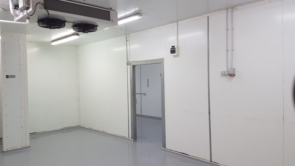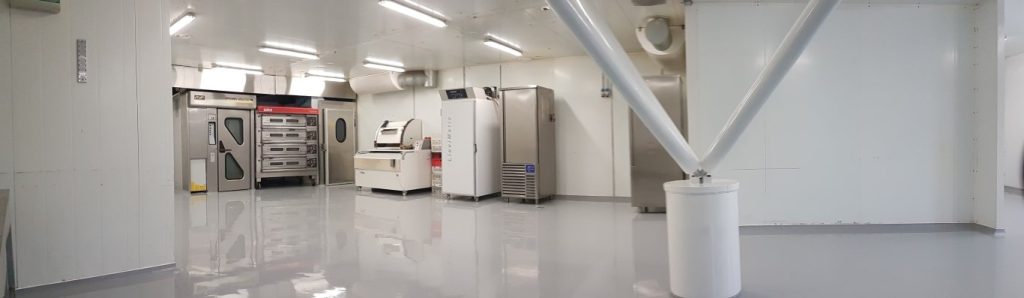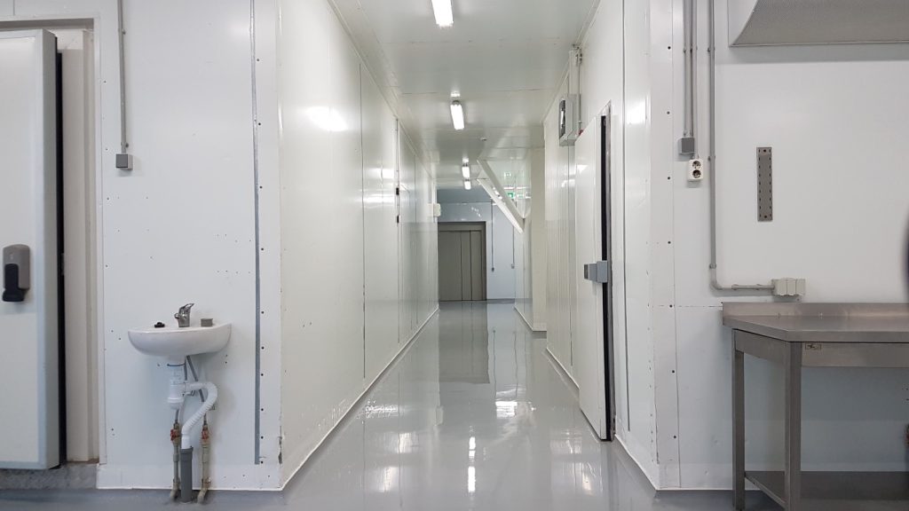 Papildus izbūvētas noapaļotas grīdlīstes, nodrošinot higiēnisku pāreju starp grīdu un sienām atbilstoši pārtikas nozares prasībām.